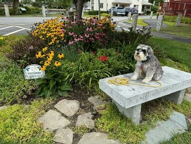 Martie's dog, Sadie, oversees the work at Hallock Commemorative Garden.