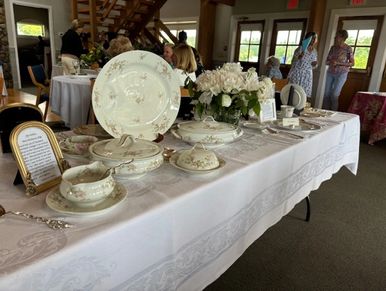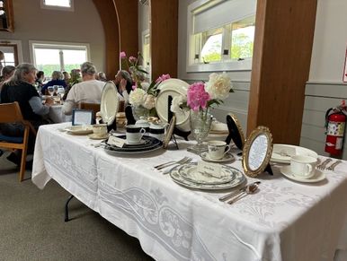 The tablescapes included arrangements of vintage china, belonging to our members.