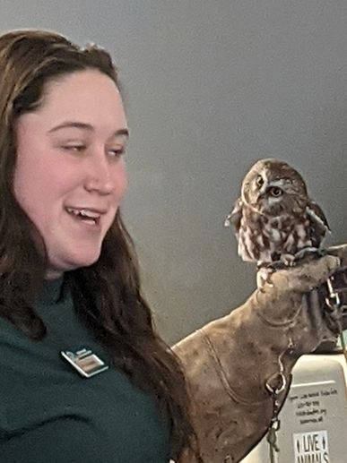 Here's Phoebe with a Northern Saw-whet owl.