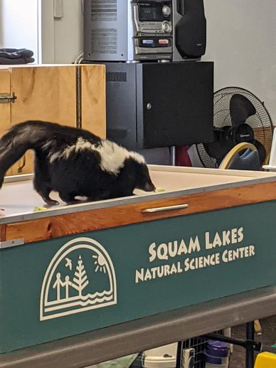 But this meeting wasn't just for the birds. Here is a striped skunk who came along to visit.