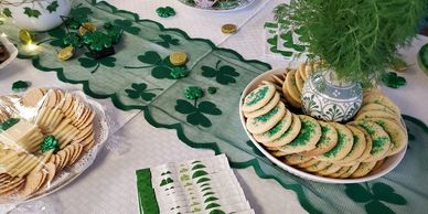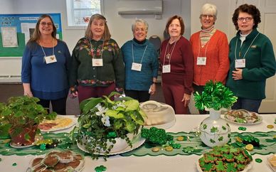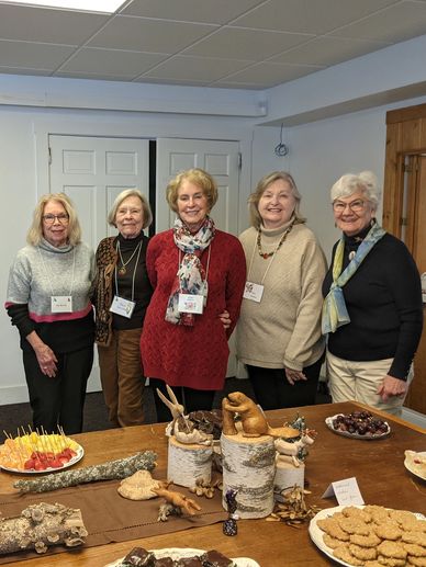 The Hospitality team presented a delightful tablescape and treats. Shown are: Pat Blondo, Chris Stevens, Janet Kenty, Dora Clarkson, Trish Leipold. Not pictured is Pat Gifford.